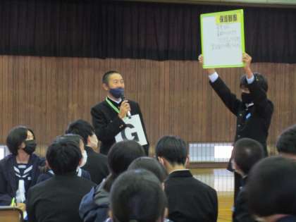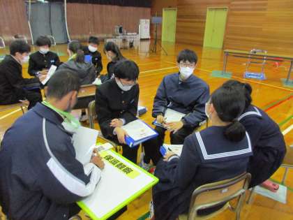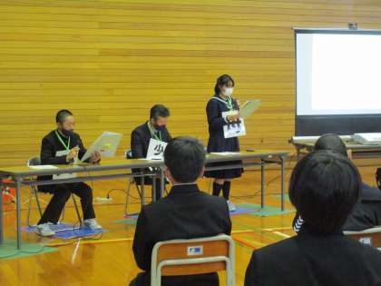 11月4日(金)2年生「模擬少年審判」 公開日 2022/11/05 更新日 2022/11/05 2年生 本日、2年生は模擬少年審判を体験しました。 少年審判がどのように行われるのかを、寸劇を見ながら体験し、実際に裁判官になったつもりで、ある事件を起こしてしまった少年の処分について、班で話し合いました。 ニュースなどで見かけたりはしても、よく分からないところも多い裁判について知る、貴重な体験となりました。