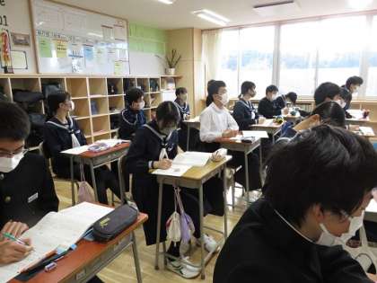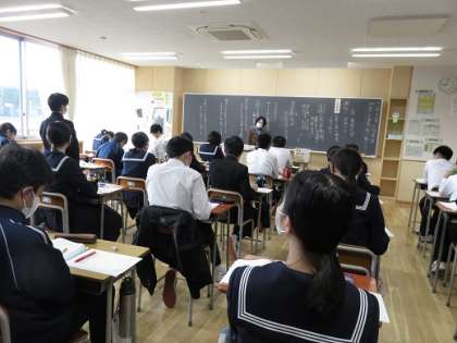「万葉集」の学習を進めています。山部赤人の富士山をたたえる長歌の意味をていねいに解釈しています。