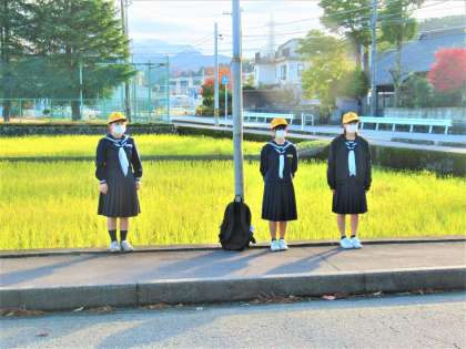 11月15日(火)安全委員会「交通安全呼びかけ運動」 公開日 2022/11/17 更新日 2022/11/17 生徒会活動 今週は安全委員が社会体育館付近に立ち、交通安全呼びかけ運動を実施しています。 今朝は2組の安全委員が呼びかけを行いました。