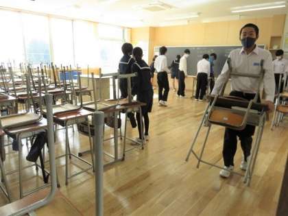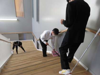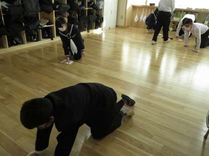 期末考査期間の清掃活動も心を込めて取り組みます。