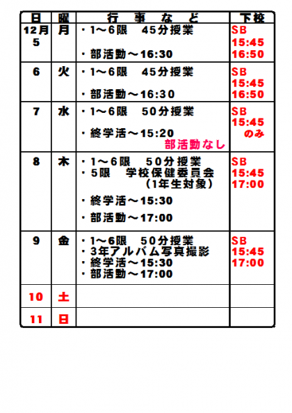 12/18( 木 ) ★保護者懇談会にお越しになる際に