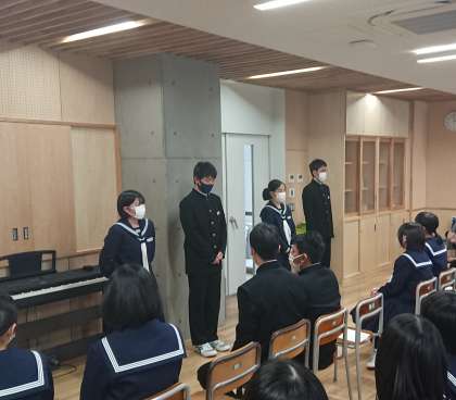 いよいよ中学校生活も終盤にさしかかり、みんな気を引き締めた表情で話を聞いていました。