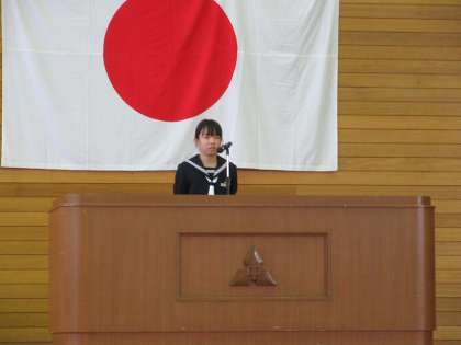 12月23日(金)意見発表 公開日 2022/12/23 更新日 2022/12/23 学校生活 各学年の代表者が意見発表をしました。1年生は、ノートづくりを工夫し、見直したことで勉強の成果が出たこと。また、学年プログラム(学年生徒会)で学年レクリエーションを企画し1年生に楽しんでもらえた喜びを語りました。