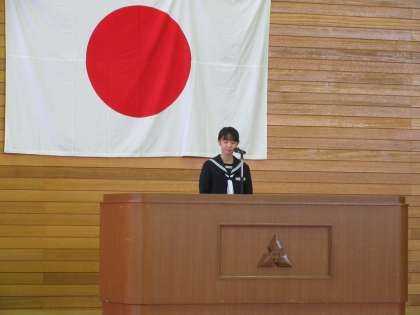 12月23日(金)意見発表 公開日 2022/12/23 更新日 2022/12/23 学校生活 3年生は、富山県中学校駅伝競走大会に向けて、真夏の暑い日も毎日練習し続けたこと。昨年度は無観客の中での大会だったが、今年は近くで応援を受けたことが大きな力になったことを述べ、これからも悔いなくいろいろなことに挑戦していきたいとすがすがしく語りました。