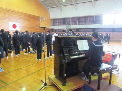清らかな音色のピアノ伴奏に合わせて、校歌を斉唱しました。