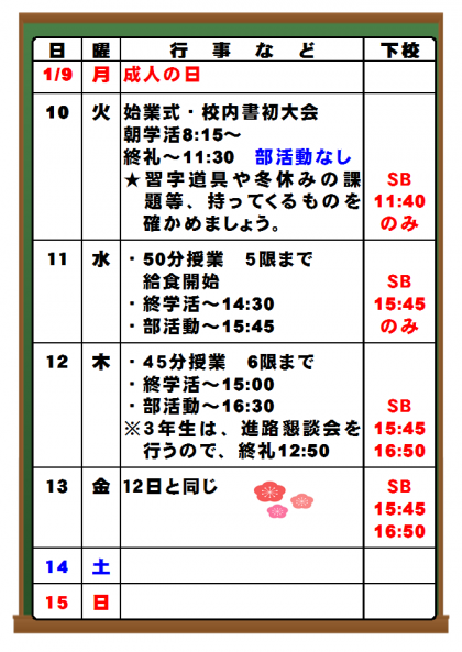 12/18( 木 ) ★保護者懇談会にお越しになる際に