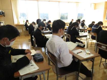 本の帯に書かれているメッセージを読み取り、自分ならばどの本を読むか考えていました。題名への興味や登場人物の心情の変化を捉える面白さ等、生徒は自分の視点をもって学習を進めました。