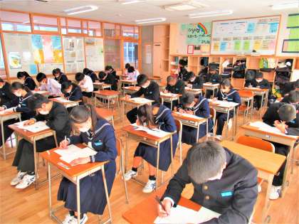 冬休みの成果を発揮しようと、数学と国語の問題に集中して取り組んでいました。