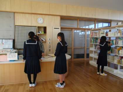 1月12日(木)昼休みの様子 公開日 2023/01/12 更新日 2023/01/12 お知らせ※2024以前 昼休みに図書室が開館することを多くの生徒が楽しみにしています。今日は、司書の富永さんがカウンターで本の貸し出しをしています。