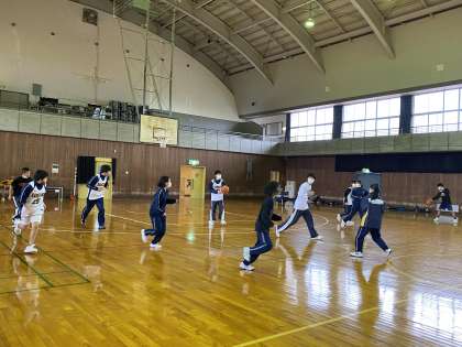 明日は練習試合(きらりマッチ富山市中学校バスケットボール交流会)に参加するため、チームとして一人一人がどう動くかを確認しながら練習しました。女子の試合は富山市体育文化センター、男子は2000年体育館で行われます。