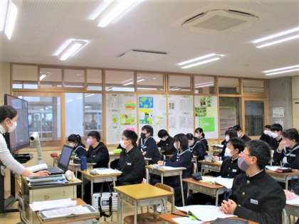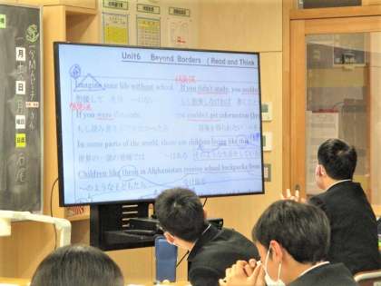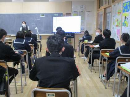 1月16日(月)3年2組 英語 公開日 2023/01/16 更新日 2023/01/16 お知らせ※2024以前 英語の授業では、「Read and Think 」を読んでいます。全員顔を上げて、読み上げる姿から、3年生の学習への意気込みが感じられます。