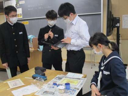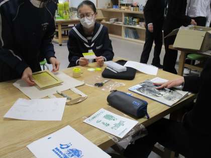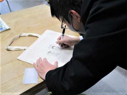 1月16日(月)3年1組 美術 公開日 2023/01/16 更新日 2023/01/16 お知らせ※2024以前 「デザインを持ち歩く」の学習もいよいよ今日は最終段階に入りました。自分の気分が高まる、友達にプレゼントしたくなる作品を目指しました。シルクスクリーンから、手提げ袋にデザインを写しました。