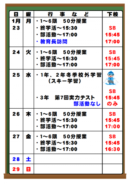 1月19日(木)1週間のお知らせ
