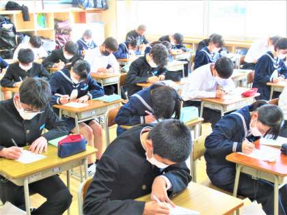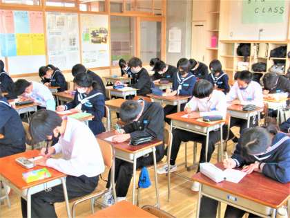 清掃が終わるとクラス全員が素早く着席して、黙々と集中して問題に取り組んでいます。