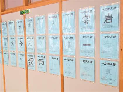 1月30日(月)2年生「私の一文字」 公開日 2023/01/30 更新日 2023/01/30 2年生 「漢字一文字」で表した新年の決意表明が、2年教室廊下壁面に掲示されています。 じっくりと考えて書き留めたその一文字からは、今年にかける強い思いが伝わってきます。