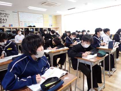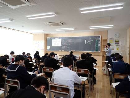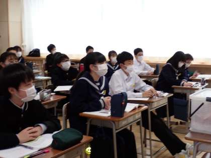 2月1日(水)1年1組 数学 公開日 2023/02/01 更新日 2023/02/01 1年生 1年1組の数学では、「正多面体マスターへの道」という課題で学習しています。正四面体、正六面体・・、正二十面体の覚え方のコツを語呂合わせで習いました。「ああ、なるほどね」というつぶやきもちらほら聞こえてきます。拍手をする生徒もいました。