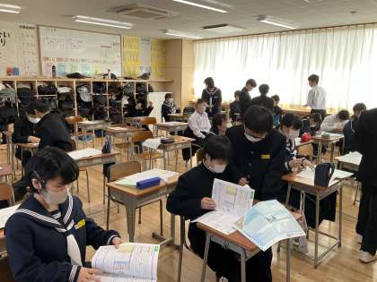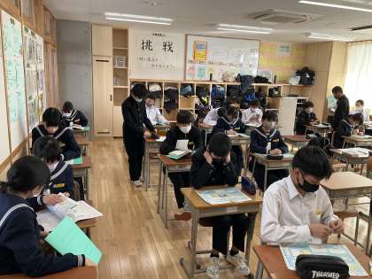 進路学習 (2月2日) 1学年 公開日 2023/02/02 更新日 2023/02/02 1年生 6限目の総合の時間は進路学習で、以前に行った進路適性調査の結果を配布しました。自分に合う職業などを興味深く読んだり、友だちとお互いに見せ合ったりしていました。
