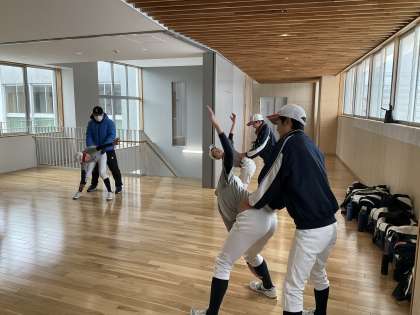 2月4日(土) 昨日は節分、今日は立春で、暦の上では春ですが、グランドは、まだ雪の下で眠っています。校舎内で、10分完走、身体ほぐし、トレーニングなどを行いました。