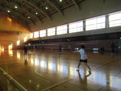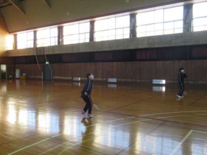 テスト休み前の最後の練習。日差しも温かく、思いっきりラケットを振って練習していました。