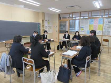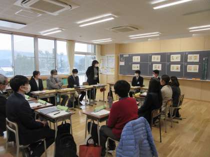 5つの班に分かれ、小学校と中学校の教員が話し合いました。学習課題の提示、学習形態の工夫、個別の支援について。自主学習や宿題の取組を進める上で家庭との連携が大切であること、小中連携をクロムブックを使って行うことへの提案など、次年度へとつながる貴重な意見が盛んに繰り広げられました。