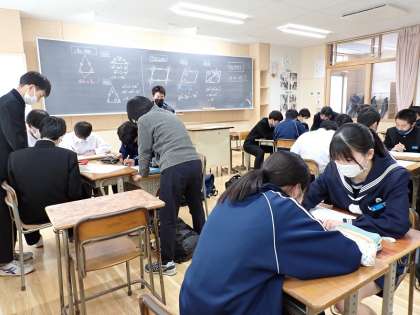 2月16日(木)2年生「自主学習会」 公開日 2023/02/16 更新日 2023/02/16 2年生 本日の放課後、学年末考査に向けての自主学習会が行われました。 数学の基本的な問題プリントに取り組み、分からないところは友達に聞いたり、教員に質問したりして、解答を導き出していました。 明日の放課後も、いくつかの教科で自主学習会が行われます。 来週月曜から始まる学年末考査に向けて、万全の準備を整えて、テスト当日を迎えてほしいと思います。