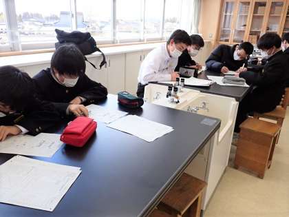 放課後、理科室で黙々とプリントで仕上げ学習をしています。