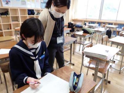 2月16日(木)自主学習 2年英語 公開日 2023/02/16 更新日 2023/02/16 お知らせ※2024以前 放課後の英語の自主学習には、2人の英語の教員が担当しました。マンツーでじっくりと学習できたようです。