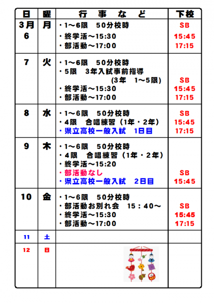 3月3日(金)1週間のお知らせ