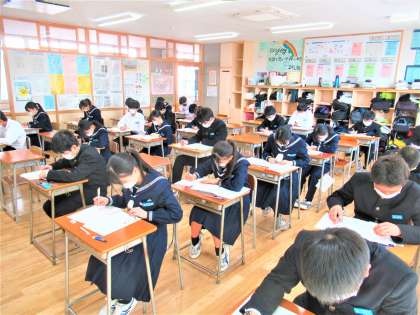 3月7日(火)2年生「第2回テキストテスト」 公開日 2023/03/07 更新日 2023/03/07 2年生 第2回テキストテストの様子です。 今日は数学と理科を実施しました。 毎日の家庭学習の成果を出し切ろうと、問題に集中して取り組んでいました。