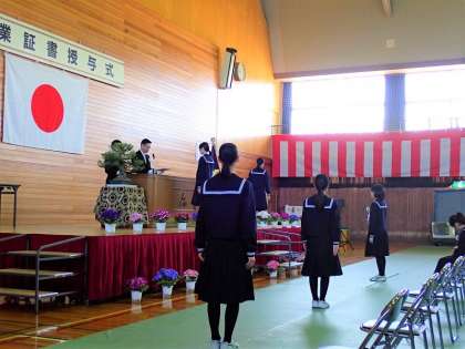 当日前の3日間で、卒業式の通し稽古(卒業証書を全員がもらう練習)を4回も行ったので、卒業生の動きは流れるように美しかったです。また、保護者の前で向きを直し、一礼する姿にも決意のような思いが感じ取れました。