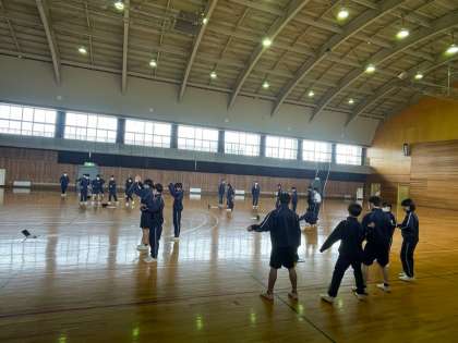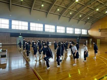 1年生がダンスをしています。 決められている動きに自分達でアレンジを加えながら行なっています。
