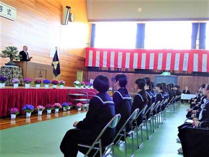 育友会(PTA)会長から、祝辞をいただきました。入学式後まもなくから、コロナ禍の影響によっていろいろな経験をしたこと、1年生、2年生、3年生と学年を重ねる中で、成長を見せた合唱コンクールの話など、心打たれる内容ばかりでした。