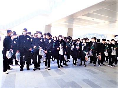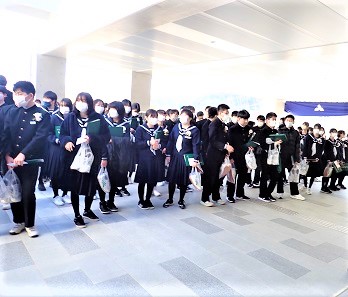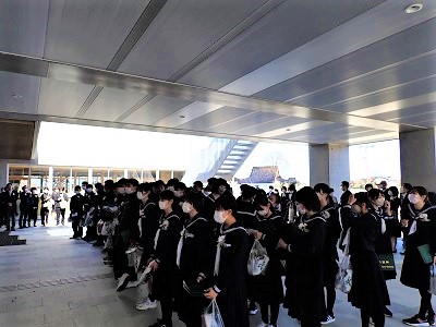 卒業式ダイジェスト 公開日 2023/03/18 更新日 2023/03/18 学校生活 卒業証書授与式の後、学級で一人一言ずつ述べ、最後の学活を終えました。学年セレモニーのため、生徒玄関前へ移動しました。