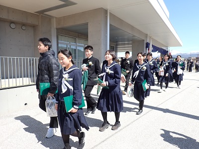 1年生、2年生が、卒業生を大きな拍手とともに歓送しました。