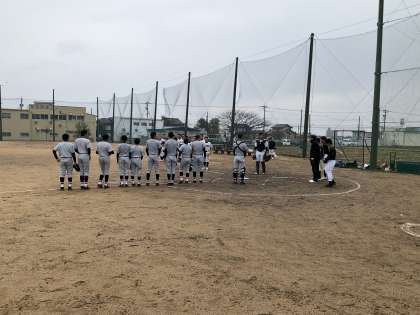 4月8日(土) 今日は、大門中学校野球部と練習試合の日でした。大門中学校は、4年前に全中に出場したことのある強豪校で、横綱に胸を借りるつもりで臨みましたが… 2回途中で激しく雨が降り中断、そのままノーゲームとなりました。とても残念でした。