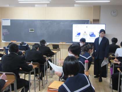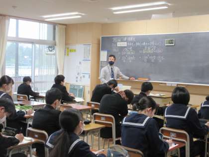 画像は、3年生の4限目の授業の様子です。1組は「数学」、2組は「英語」でした。英語では、英語で自己紹介があり、ドキドキ感が伝わってきました。