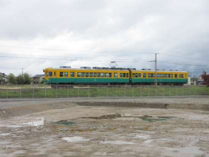 肌寒い朝となりました。中学校の北側には線路があり、懐かしい色合いの電車が走っていきます。愛称として、かぼちゃ電車、だいこん電車と言われているそうです。