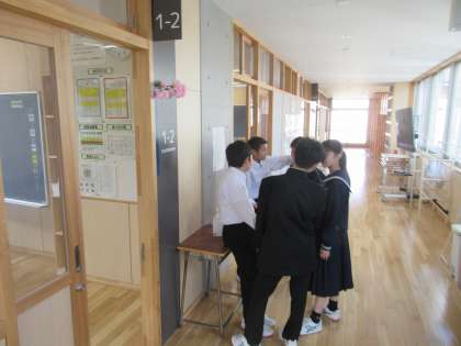 今日は暑くなりそうです。 登校した生徒は、朝から友達と楽しそうに過ごしています。