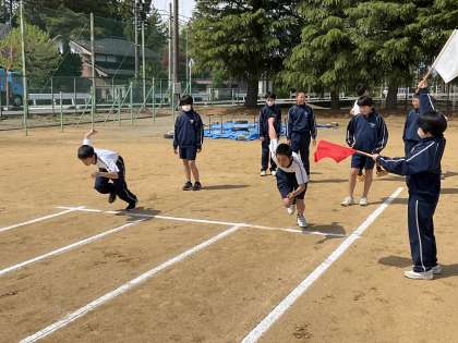 スポーツテストに取り組んでいます。今日の種目は50m走です。去年よりタイムが良くなっているかな?みんな必死です。