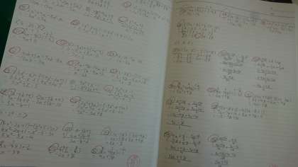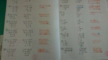 2年生の数学では、週末や長期休業中の課題として、『1日10問以上』に取り組んでいます。今の自分に足りない部分やさらに伸ばしたい部分の問題を自分で考えて10問以上解いて丸付けをしてくるというものです。先日の週末課題にしっかり取り組んだノートの内容を一部紹介します。ちなみにゴールデンウィークも『1日10問以上』は行います。