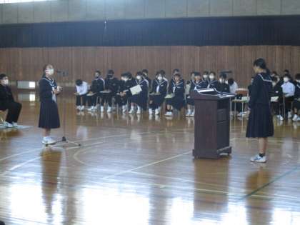 5月2日(火) 生徒総会 公開日 2023/05/02 更新日 2023/05/02 生徒会活動 令和5年度前期の生徒総会を行いました。 生徒会執行部および各委員会の活動計画案が承認され、前期の生徒会活動がスタートします。 各委員会の活動案に対する質疑応答では、全学年から質問者が複数名出るなど、大変活発な雰囲気の総会となりました。