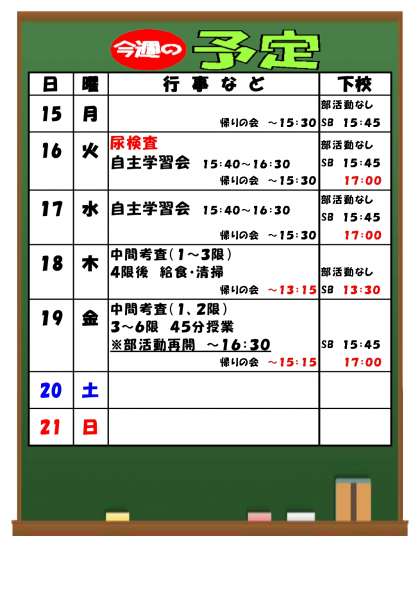 木、金曜日の中間考査に向け、計画的に学習を進めましょう。