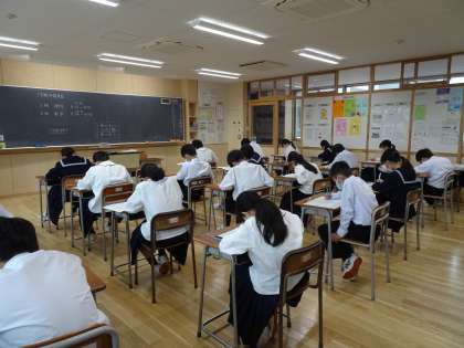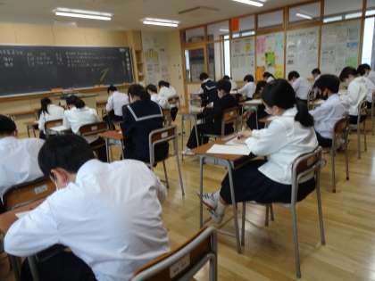 写真は、2限目の「数学のテスト」の様子です。(上:1組、下:2組)