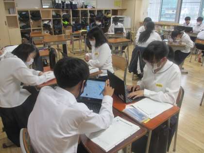 6月2日(金)2年総合 公開日 2023/06/02 更新日 2023/06/02 2年生 「社会に学ぶ『14歳の挑戦』」に向けての事前学習を行っています。 クロムブックを使って、お世話になる事業所の場所を確認したり、挨拶のしかたを練習したりといきいきと活動していました。