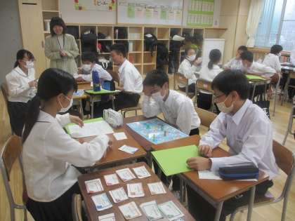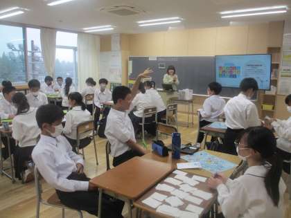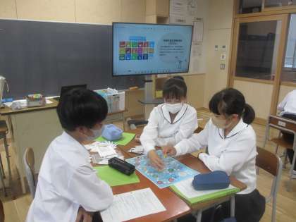 6月2日(金)1−1総合 公開日 2023/06/02 更新日 2023/06/02 1年生 1年1組では総合の時間に、「SDGsについて知ろう」と、すごろくをしながらクイズをしたり、話し合ったりして、SDGsについての理解を深めました。 さいころの目が出る度に歓声が上がり、たいへん盛り上がりつつ、学習を進めました。