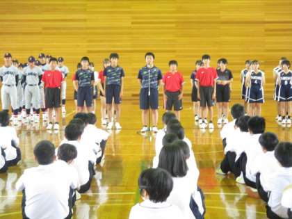 6月12日(月)市中学校選手権大会壮行会 公開日 2023/06/12 更新日 2023/06/12 部活動 今週末に行われる選手権大会に向け、壮行会を行いました。 上:各部の抱負 中:選手宣誓 下:激励の言葉