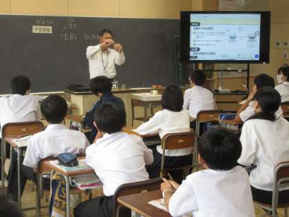 2-2は、理科の様子です。実験で変化する水溶液の様子を興味深く観察していました。