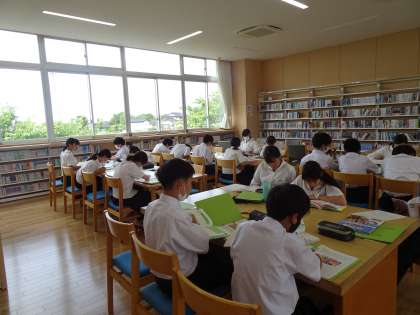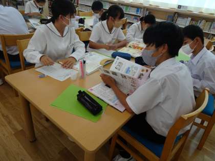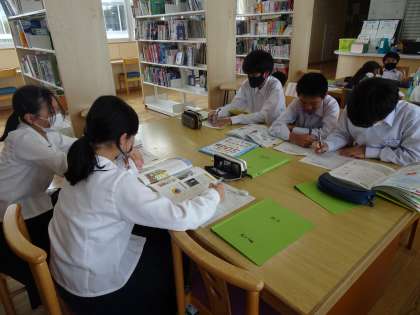 総合的な学習の時間に、図書室でSDGsについて各々調べました。