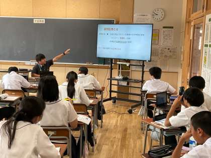 薬物乱用について学習しました。クロムブックを使い、保体ノートにまとめていました。