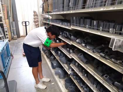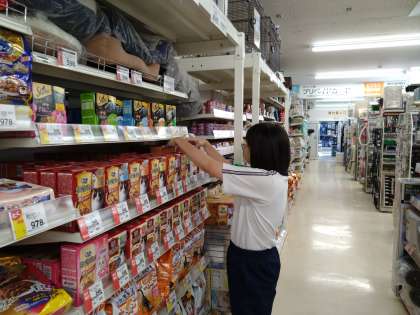店内で棚卸しの作業を行っていました。「こんにちは」「いらっしょいませ」のあいさつもまだまだ慣れない様子でしたが、がんばっています。
